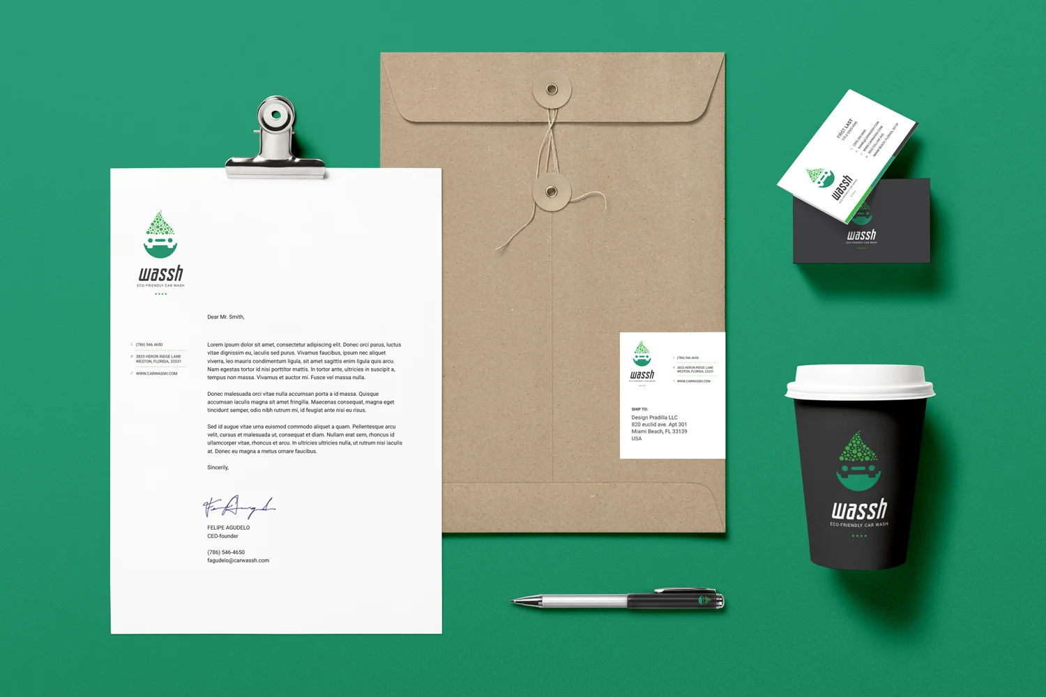 WasshEco-friendly car wash• • • •Branding and corporate identity for Wassh, an eco-friendly car wash company based in South Florida. BACK TO WORK Next Project →